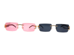 Upgrade your style with this premium Rimless Square Sunglasses Combo featuring two stunning shades – elegant Pink and classic Black. Designed with a luxury gold metal frame and stylish side detailing, these sunglasses add a bold and fashionable touch to your overall look.